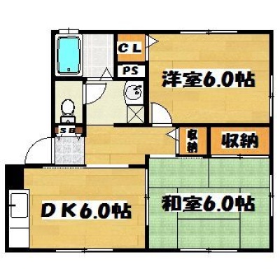2DK(48.45m²)└ DK6帖 和室6帖 洋室6帖