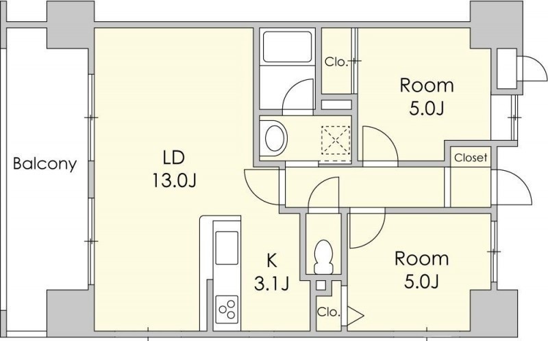 2LDK(55.98m²)└ LDK16.1帖 洋室5帖 洋室5帖