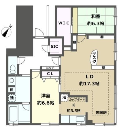 2LDK(82.21m²)└ LDK20.8帖 洋室6.6帖 和室6.3帖