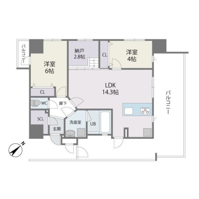 2LDK(60.42m²)└ LDK14.3帖 洋室6帖 洋室4帖 その他2.8帖