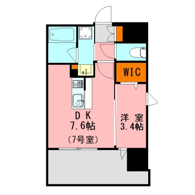 1DK(30m²)└ DK7.6帖 洋室3.4帖