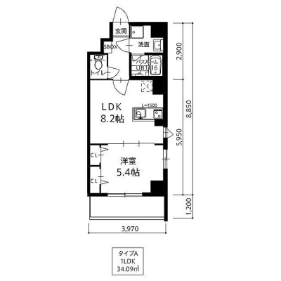 1LDK(34.09m²)└ LDK8.2帖 洋室5.4帖
