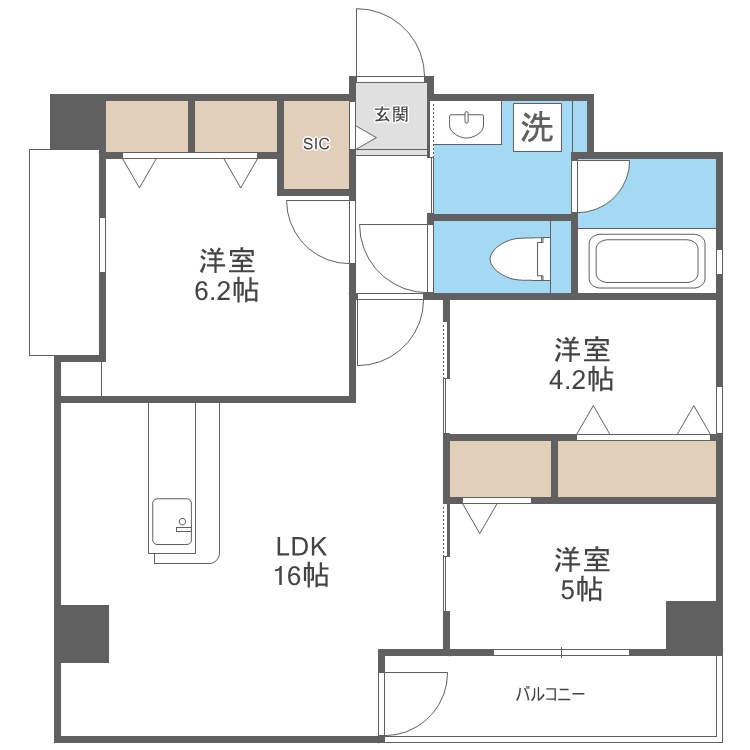 3LDK(69m²)└ LDK16帖 洋室6.2帖 洋室5帖 洋室4.2帖