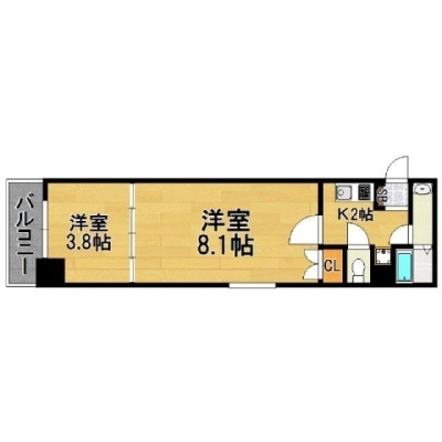 1K(32.58m²)└ 洋室8.1帖 洋室3.8帖
