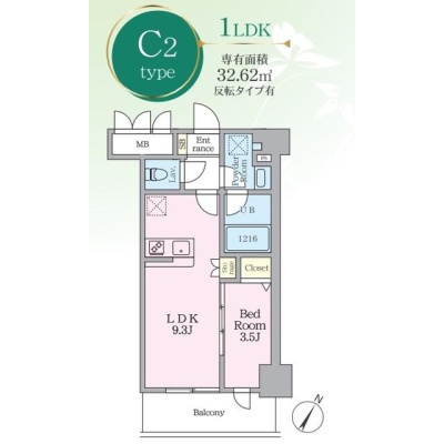 1LDK(32.62m²)└ LDK9.3帖 洋室3.5帖