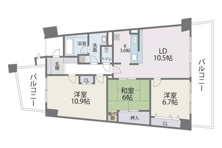 3LDK(91.01m²)└ LDK14.1帖 洋室6.7帖 洋室10.9帖 和室6帖