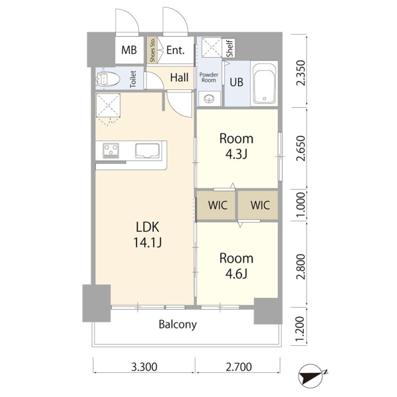 2LDK(52.8m²)└ LDK14.1帖 洋室4.6帖 洋室4.3帖