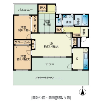 3LDK(82.1m²)└ LD13.4帖 洋室6.1帖 洋室6帖 和室6.3帖