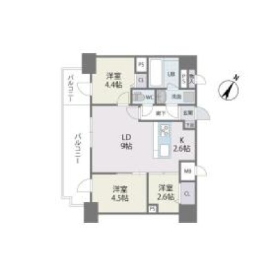 3LDK(54m²)└ LDK11.6帖 洋室4.4帖 洋室4.3帖 洋室2.6帖