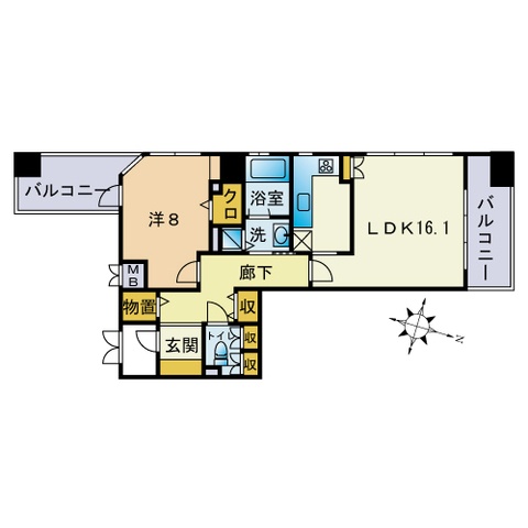1LDK(65.7m²)└ LDK16.1帖 洋室8帖