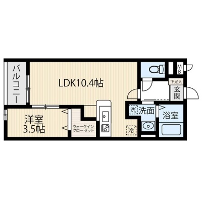 1LDK(34.84m²)└ LDK10.4帖 洋室3.5帖