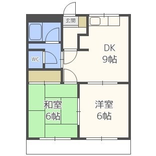 2DK(45.63m²)└ DK9帖 洋室6帖 和室6帖