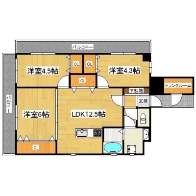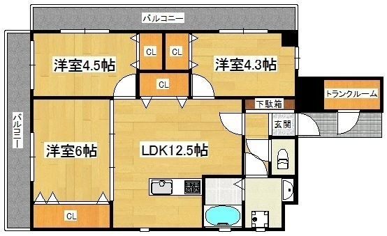 3LDK(73.5m²)└ LDK12.5帖 洋室6帖 洋室4.5帖 洋室4.3帖