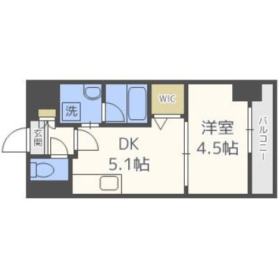 1DK(24.7m²)└ DK5.1帖 洋室4.5帖