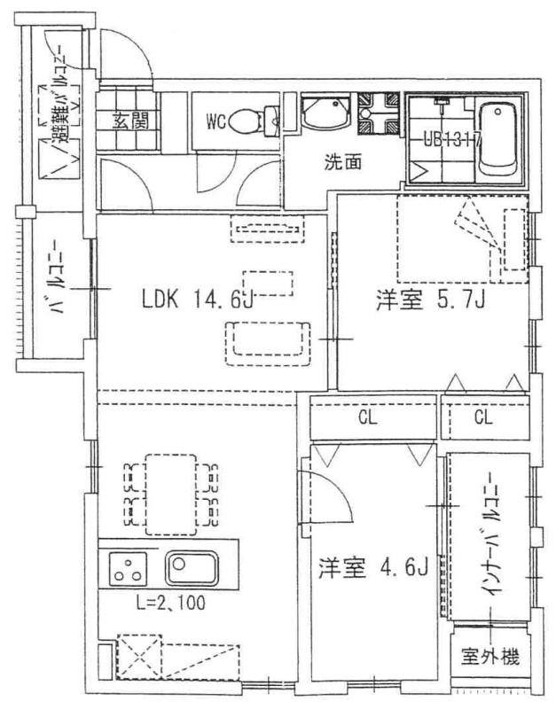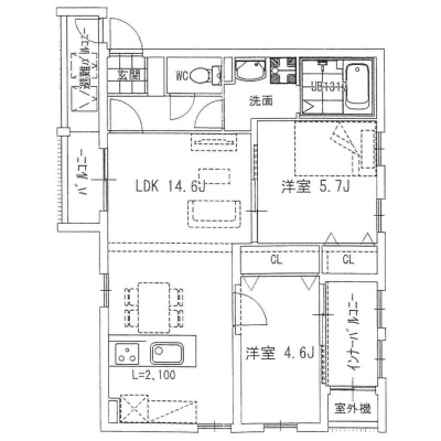 2SLDK(59.44m²)└ LDK14.6帖 洋室5.7帖 洋室4.6帖 S