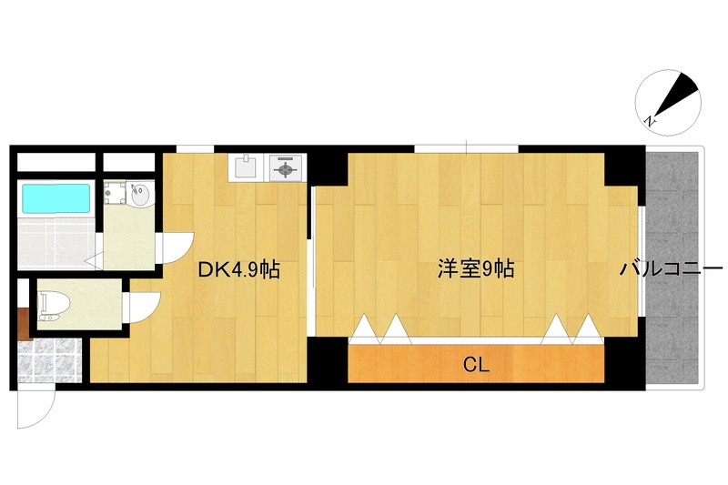 1DK(34.02m²)└ DK5.2帖 洋室9帖
