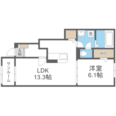 1LDK(50.05m²)└ LDK13.3帖 洋室6.1帖