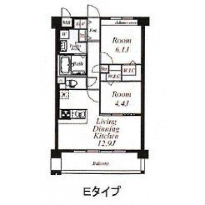 2LDK(56.23m²)└ LDK12.9帖 洋室6.1帖 洋室4.4帖