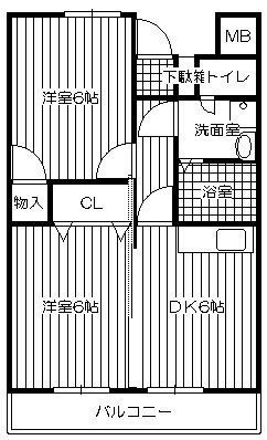 2DK(43.2m²)└ DK6帖 洋室6帖 洋室6帖