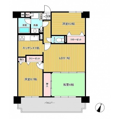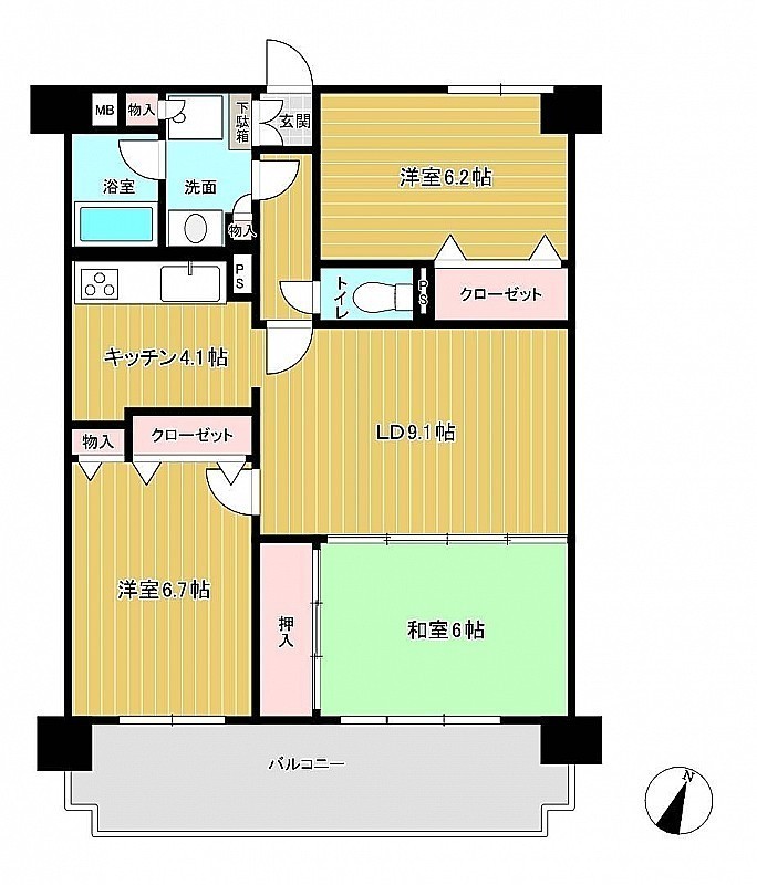 3LDK(70.5m²)└ LDK13.2帖 洋室6.7帖 洋室6.2帖 和室6帖