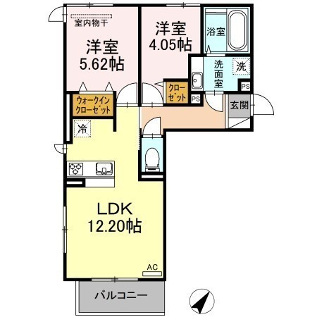 2LDK(51.68m²)└ LDK12帖 洋室5.62帖 洋室4.05帖