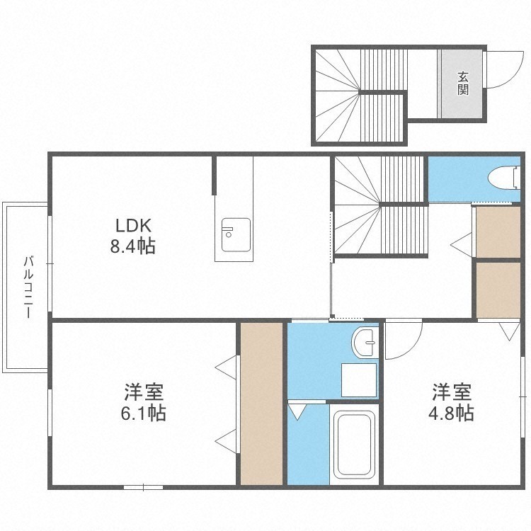 2DK(55.53m²)└ DK8.4帖 洋室6.1帖 洋室4.8帖