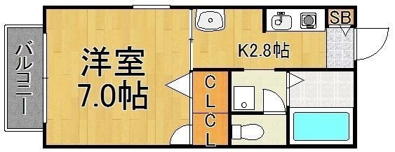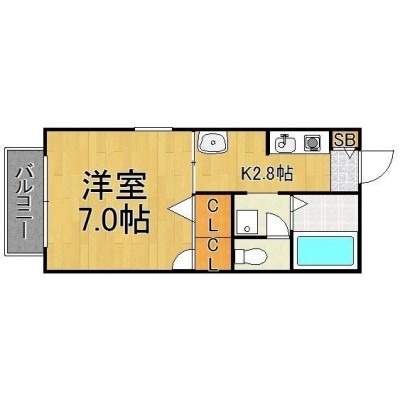 1K(24.85m²)└ 洋室7帖 K