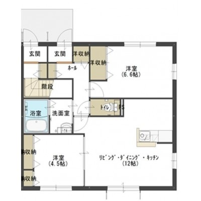 2LDK(53.9m²)└ LDK12帖 洋室6.6帖 洋室4.5帖