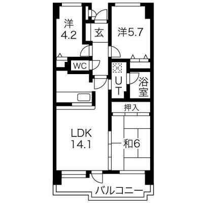 3LDK(61.01m²)└ LDK14.1帖 洋室5.7帖 洋室4.2帖 和室6帖