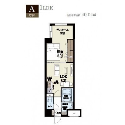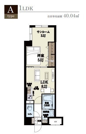 1LDK(40.04m²)└ LDK8.3帖 洋室5帖 その他3.3帖
