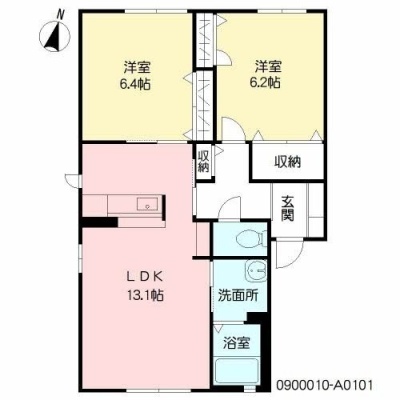 2LDK(59.81m²)└ LDK13.1帖 洋室6.4帖 洋室6.2帖