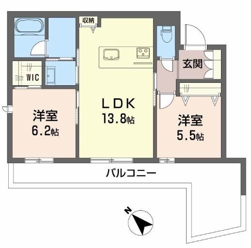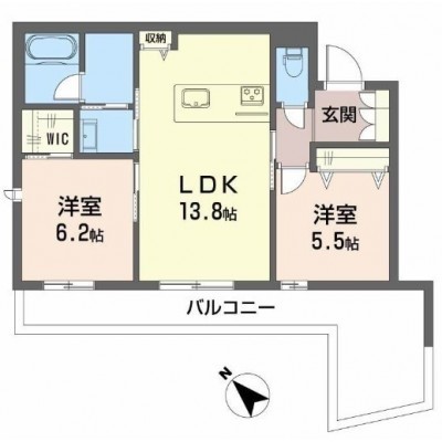 2LDK(59.55m²)└ LDK13.8帖 洋室5.5帖 洋室6.2帖