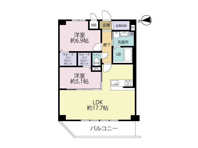 2LDK(67.63m²)└ 洋室6.9帖 洋室5.1帖 LDK17.7帖