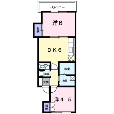 2DK(43.8m²)└ DK6帖 洋室6帖 洋室4.5帖