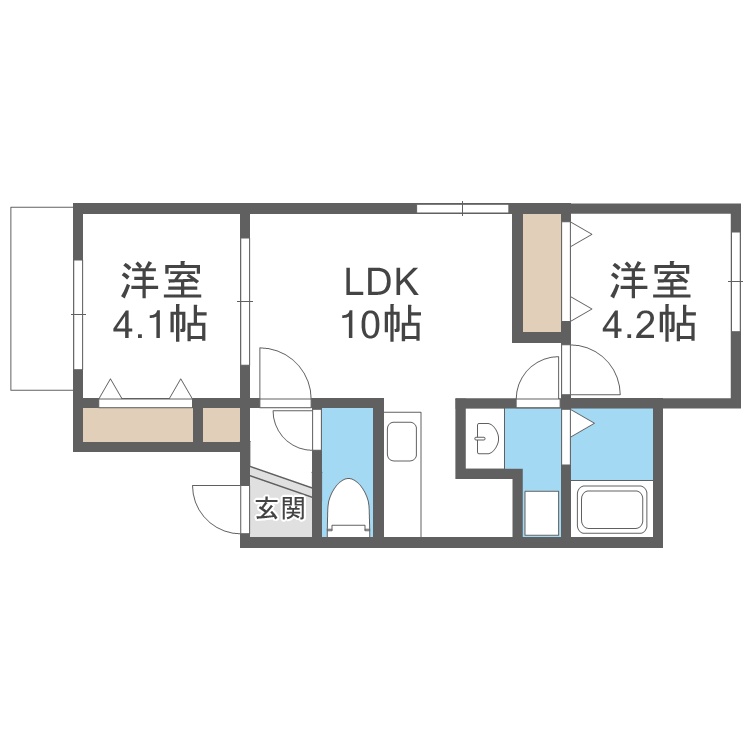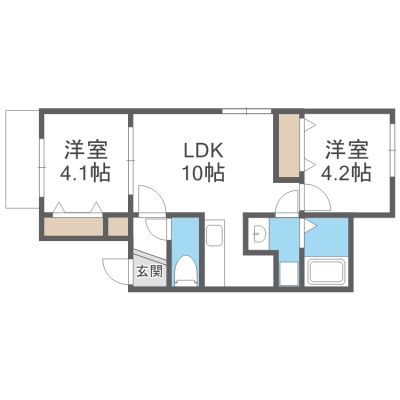 2LDK(40.08m²)└ LDK10帖 洋室4.2帖 洋室4.1帖