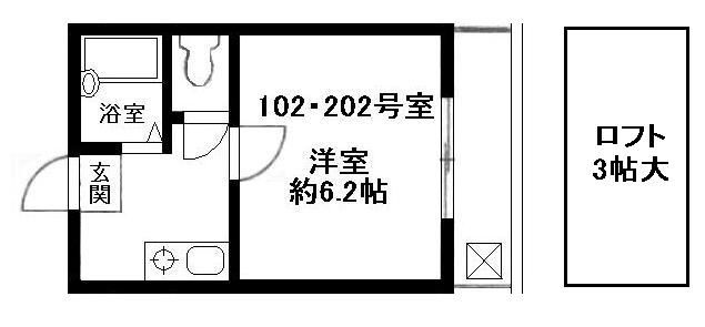 1K(17.5m²)└ 洋室6.2帖 K