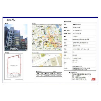 備考 福岡で1986年創業!テナント専門の弊社に貸店舗・事務所のことは何でもお任せください! 居抜き物件・非公開物件多数ございます! 新着情報も豊富です!開店・移転・増店・居抜き売却はお気軽にお問い合わせください! 主な周辺施設色がついているアイコンをクリックすると、本物件までの道順を見ることができます。