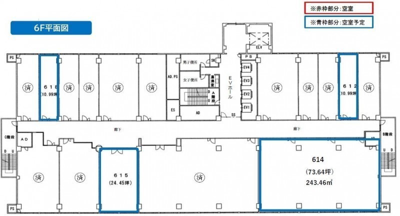 所在階/建物の階建 6階(614) / 地上9階 地下1階建 主要採光面 構造 鉄骨鉄筋コンクリート(SRC)造 間取り 契約期間 3年間 権利金 なし 住宅保険 出店推奨業種 事務所 出店不可業種 引渡し 2025年9月初旬 管理人 取引態様 仲介 物件No 設備・特徴 - エレベーター
