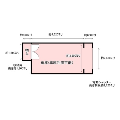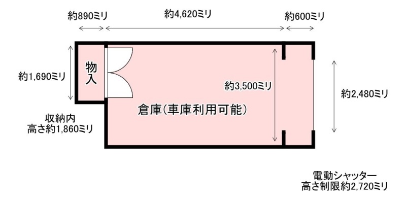 ここに注目!※倉庫・車庫・ガレージ、多目的に利用可! ※幅3,500ミリ(間口2,480ミリ)・奥行5,220ミリ・高さ2,720ミリ(シャッター下)