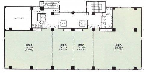 ここに注目!百年橋通り沿い・本館と別館連結の大型オフィスビル 各階内装:事務所仕上げ・OAフロア:2.7m・1フロア1社タイプ 有人警備+機械警備併用の安心セキュリティ・大型荷搬用EV2基装備 リフレッシュルーム有り