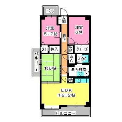 3LDK(70.2m²)└ LDK12.2帖 洋室6帖 洋室5.7帖 和室6帖 / 間取り図参照