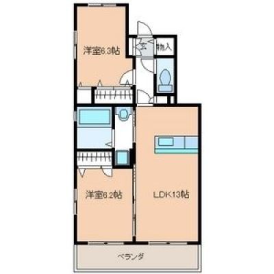 2LDK(60.03m²)└ LDK13帖 洋室6.2帖 洋室6.3帖
