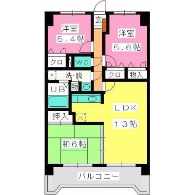3LDK(69.36m²)└ LDK13帖 洋室5.4帖 洋室5.7帖 和室6帖
