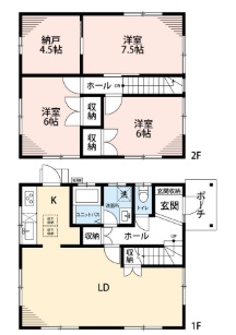 3LDK(96.74m²)└ LDK19帖 洋室7.5帖 洋室6帖 洋室6帖 S4.5帖