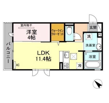1LDK(39.77m²)└ LDK11.4帖 洋室4帖
