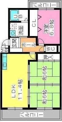 3LDK(66.29m²)└ LDK11.4帖 和室6帖 和室6帖 洋室6.8帖