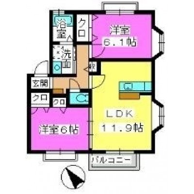 2LDK(55.54m²)└ LDK11.9帖 洋室6.1帖 洋室6帖 / LDK11.9/洋6.1/洋6