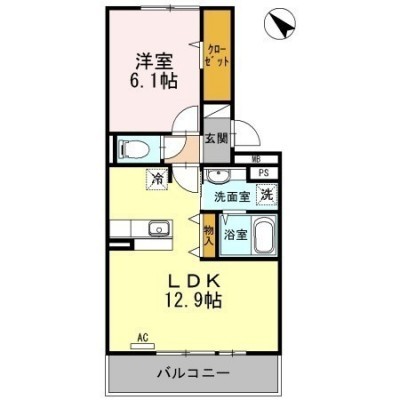 1LDK(44.62m²)└ LDK12.9帖 洋室6.1帖