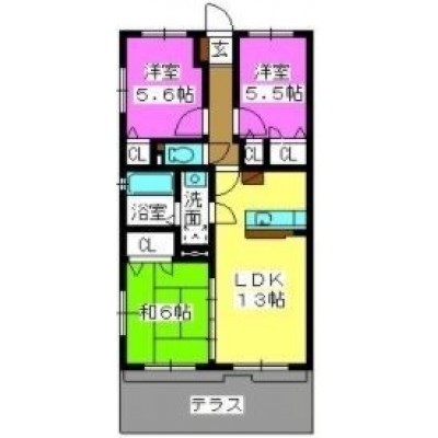 3LDK(68.32m²)└ LDK13帖 洋室5.6帖 洋室5.5帖 和室6帖