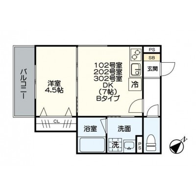 1DK(31.54m²)└ DK7帖 洋室4.5帖